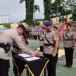 TANGGAMUS – Polres Tanggamus Polda Lampung menggelar korp raport kenaikan pangkat periode 1 Juli 2023 terhadap 28 personel di Lapangan Mapolres setempat,