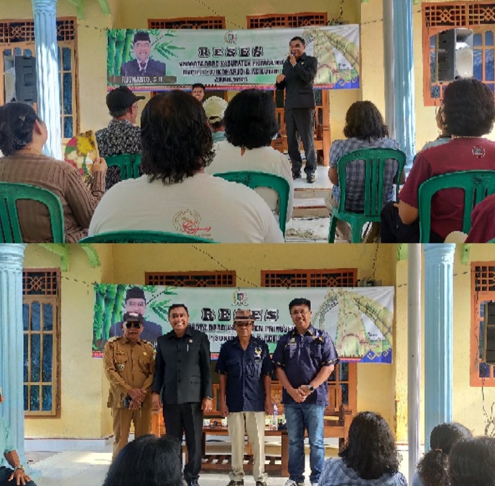 PRINGSEWU, Sir Lampung News – Anggota DPRD Dapil II Sukoharjo dan Adiluwih Kabupaten Pringsewu, Rusmanto S.H menggelar reses di Pekon Kutawaringin Kecamatan Adiluwih, Senin (27/04/2026).